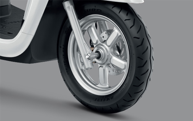 Tubeless tires for added safety and convenience and stylish aluminum wheel.